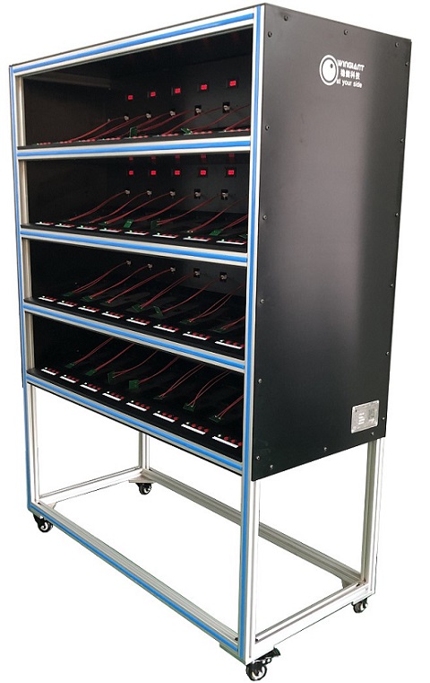采用電池放電架的安全原理是,將電池內部電量通過一邊采集電壓和溫度的方式,更大限度的將電池電量放盡,以盡可能在降低產品在運輸過程中的任何意外造成的意外災害,保證投資價值。