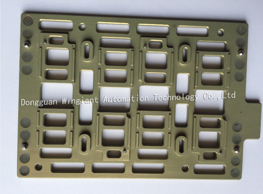 過爐治具主要應用于SMT或者SMP工藝過程中,輔助PCB薄板在無板邊或者高溫導致板材變形,影響產品的貼裝,穩健自動化采用美國進口航空鋁材AL7075,配合進口高精密機床,經過6道工藝,加工完成后保證平面度在+/-0.2mm